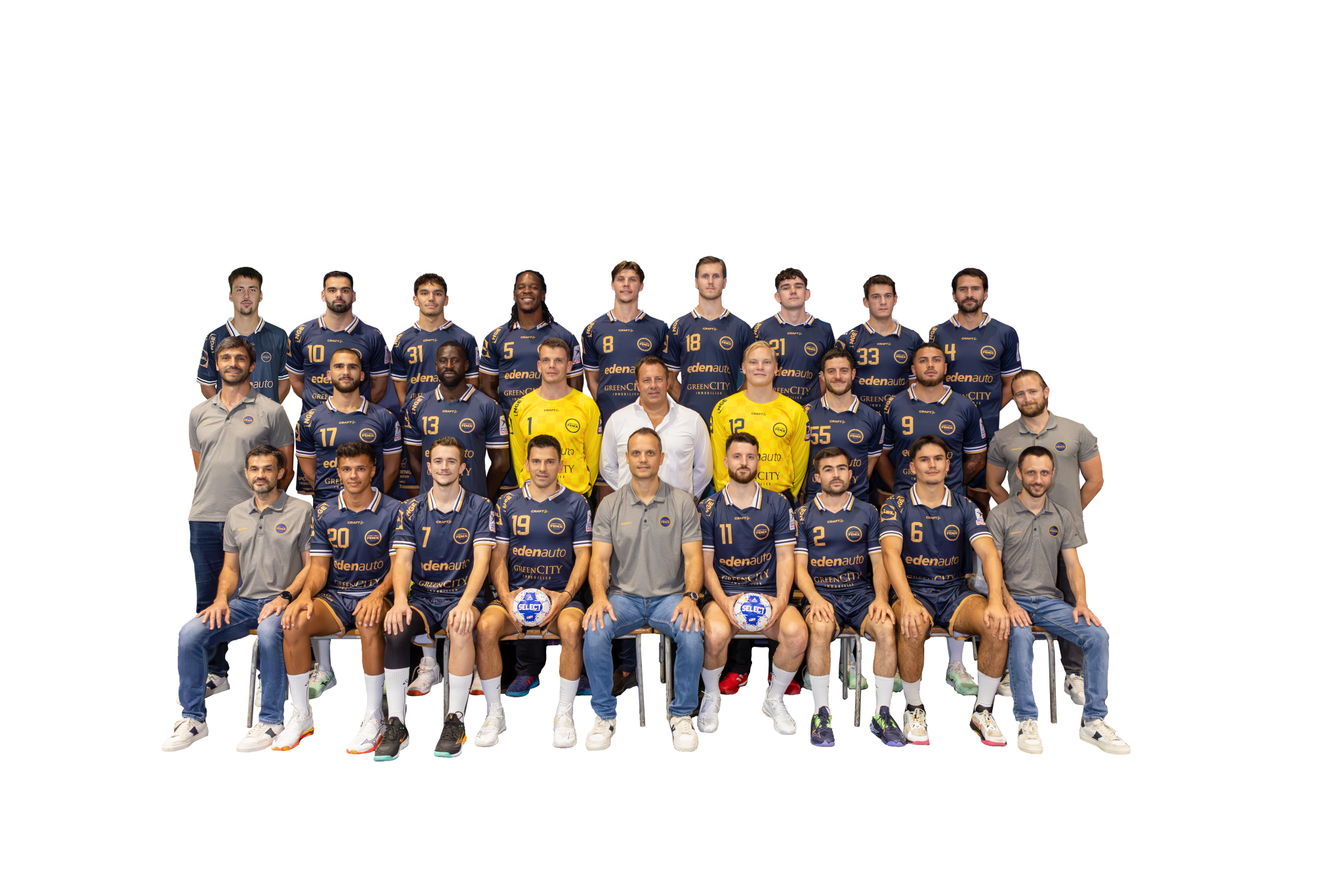 EFFECTIF & STAFF CALENDRIER & RÉSULTATS CLASSEMENT Joueurs 01 Jef LETTENS GARDIEN Jef LETTENS GARDIEN DEPUIS 2019 AGE 35 ans POIDS 93kg TAILLE 193cm 02 Romain GIRAUDEAU AILIER DROIT Romain GIRAUDEAU AILIER DROIT DEPUIS 2017 AGE 25 ans POIDS 71kg TAILLE 170cm 04 Erwin FEUTCHMANN ARRIÈRE GAUCHE Erwin FEUTCHMANN ARRIÈRE GAUCHE DEPUIS 2021 AGE 35 ans POIDS 99kg TAILLE 195cm 05 Gabriel NYEMBO PIVOT Gabriel NYEMBO PIVOT DEPUIS 2023 AGE 28 ans POIDS 104kg TAILLE 190cm 07 Téo JARRY AILIER GAUCHE Téo JARRY AILIER GAUCHE DEPUIS 2007 AGE 25 ans POIDS 78kg TAILLE 183cm 08 Jund HUGO PIVOT Jund HUGO PIVOT DEPUIS 2025 AGE 24 ans POIDS 100kg TAILLE 194cm 10 Gonçalo VIEIRA ARRIÈRE GAUCHE Gonçalo VIEIRA ARRIÈRE GAUCHE DEPUIS 2020 AGE 26 ans POIDS 98kg TAILLE 190cm 11 Edouard KEMPF AILIER DROIT Edouard KEMPF AILIER DROIT DEPUIS 2020 AGE 27 ans POIDS 80kg TAILLE 178cm 12 Simon MOLLER GARDIEN Simon MOLLER GARDIEN DEPUIS 2024 AGE 25 ans POIDS 95kg TAILLE 190cm 13 Bakary DIALLO ARRIÈRE GAUCHE Bakary DIALLO ARRIÈRE GAUCHE DEPUIS 2022 AGE 30 ans POIDS 90kg TAILLE 188cm 17 Uros KOJADINOVIC ARRIÈRE DROIT Uros KOJADINOVIC ARRIÈRE DROIT DEPUIS 2024 AGE 25 ans POIDS 92kg TAILLE 187cm 18 Pontus BROLIN ARRIÈRE GAUCHE Pontus BROLIN ARRIÈRE GAUCHE DEPUIS 2025 AGE 24 ans POIDS 91kg TAILLE 193cm 19 Nemanja ILIC AILIER GAUCHE Nemanja ILIC AILIER GAUCHE DEPUIS 2013 AGE 35 ans POIDS 77kg TAILLE 176cm 24 Ernest PINEAU-ROSSI PIVOT Ernest PINEAU-ROSSI PIVOT DEPUIS 2025 AGE 25 ans POIDS 98kg TAILLE 199cm 33 Enej JOVICIC DEMI CENTRE Enej JOVICIC DEMI CENTRE DEPUIS 2025 AGE 24 ans POIDS 85kg TAILLE 184cm 55 Niko MINDEGIA DEMI CENTRE Niko MINDEGIA DEMI CENTRE DEPUIS 2024 AGE 37 ans POIDS 87kg TAILLE 184cm Staff AD Danijel ANDJELKOVIC ENTRAÎNEUR Danijel ANDJELKOVIC ENTRAÎNEUR DEPUIS 2010 AGE 47 ans BC BASTIEN COSTES PRÉPARATEUR PHYSIQUE BASTIEN COSTES PRÉPARATEUR PHYSIQUE DEPUIS 2024 CR Rémi CALVEL ENTRAÎNEUR ADJOINT Rémi CALVEL ENTRAÎNEUR ADJOINT DEPUIS 2001 AGE 42 ans HF Hervé FOURNIER KINÉ Hervé FOURNIER KINÉ DEPUIS 2015 AGE 47 ans MA Antoine MAGNARD ANALYSTE VIDÉO Antoine MAGNARD ANALYSTE VIDÉO DEPUIS 2013 AGE 32 ans PS Pierre SÉBASTIEN MÉDECIN Pierre SÉBASTIEN MÉDECIN DEPUIS 2001 AGE 66 ans
