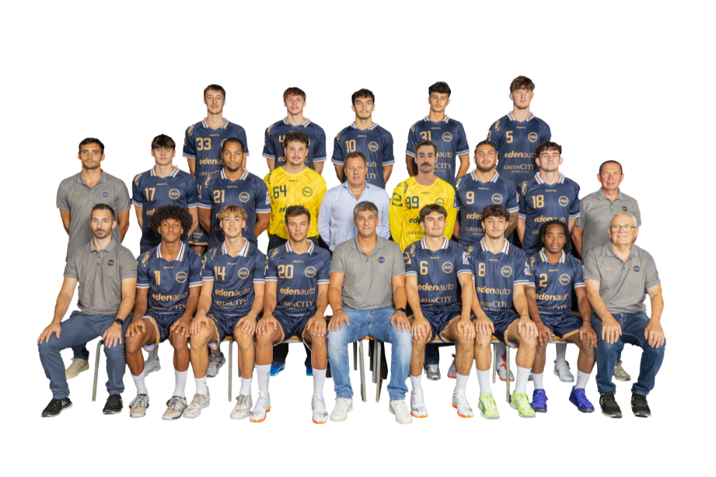 Rang du bas : Romain GANOT (Préparateur Physique) - Leni ALLEGRET (Demi-centre) - Jules FRAPIER (Ailier droit) - Timeo Albouy (Ailier gauche) - Romain TERNEL ( Entraîneur principal) - Jules GOUGEON (Demi-centre) - Matteo ANDUZE (Arrière droit) - Mytchel MESLIEN (Demi-centre) - Alain Raynal ( Responsable du Centre de Formation)